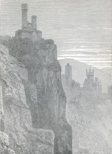 Legends of Lorch’s haunted ruins and riotous inns attracted travelers in search of adventure. Once, after drinking their fill of the ruby-colored Rhenish wine at one such inn, three young men, the sons of wealthy merchants from Nürnberg, ventured into the ancient forests of the Whisperthal. There, amid fetid swamps and craggy ravines, they met with three beautiful maidens with eyes like diamonds and hair glossy and black. The maidens promised marriage and riches if the travelers would recover their pet birds–a magpie, a starling and a raven–who had recently flown away.